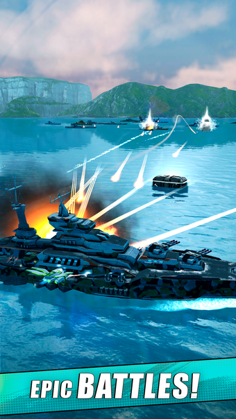 - Gra jest sterowana prostym interfejsem użytkownika (UI), możesz poruszać swoim okrętem wojennym za pomocą palca i dotykając ekranu.
